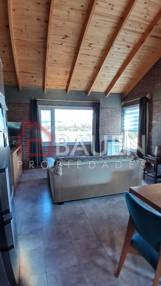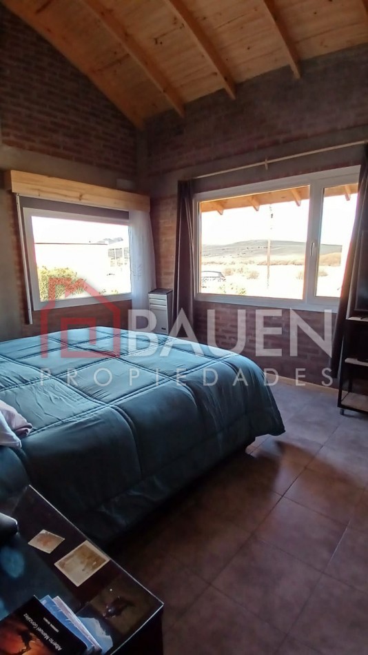 Hermosa casa de una sola planta, con un diseño simple y funcional , concepto integrado , posee amplio living comedor con cocina con ventanales que permiten el ingreso de luz solar y apreciar el paisaje de montañas y mallín , 1 amplio dormitorio con vestidor , y baño completo de muy buena calidad.